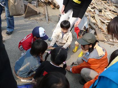 右の柱にみんなでクギを打った材料が使われてるわけね。