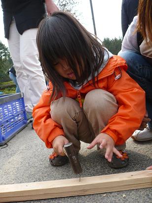 クギを打って板を固定してるぞ。