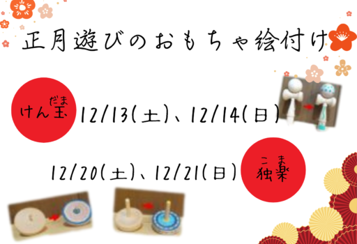 12月2週にわたり、自分だけのオリジナルけん玉と独楽の絵付けをやります!オリジナ[...]