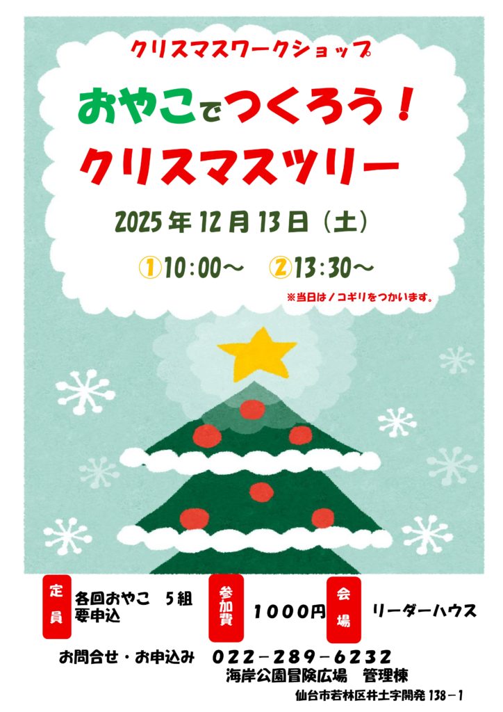 12月になりました。クリスマスの準備はどうですか?11月開催したクリスマスツリー作り材料が少し残ったので、12月13日にもう一度やりことにしました!!今年のぼうひろで作ったツリーとサンタをかざりませんか?