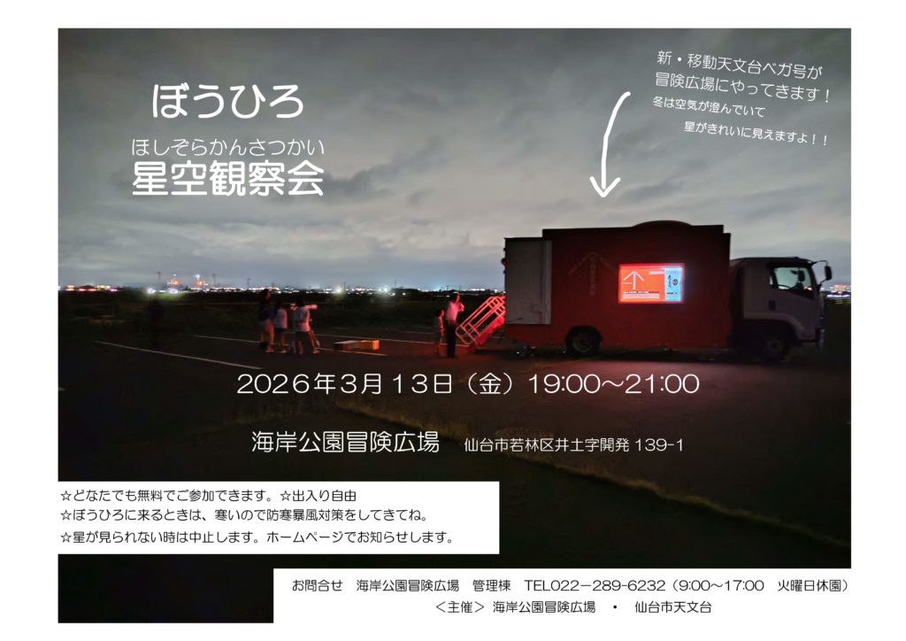 12/12 仙台市天文台「移動天文台~ベガ号で星空ウォッチング~」/ぼうひろ星空[...]
