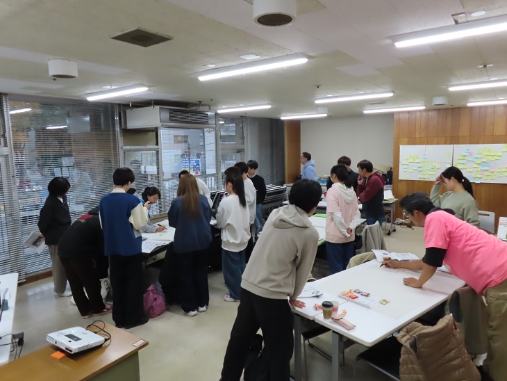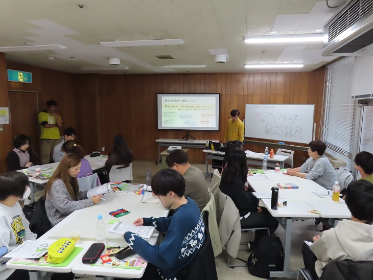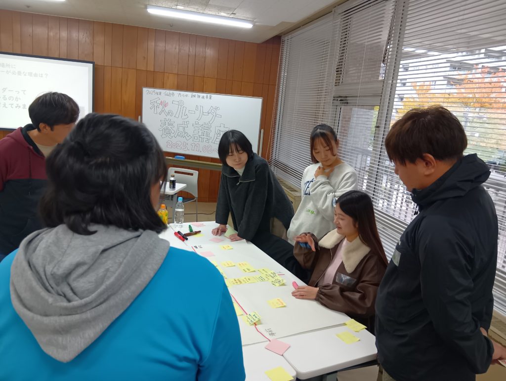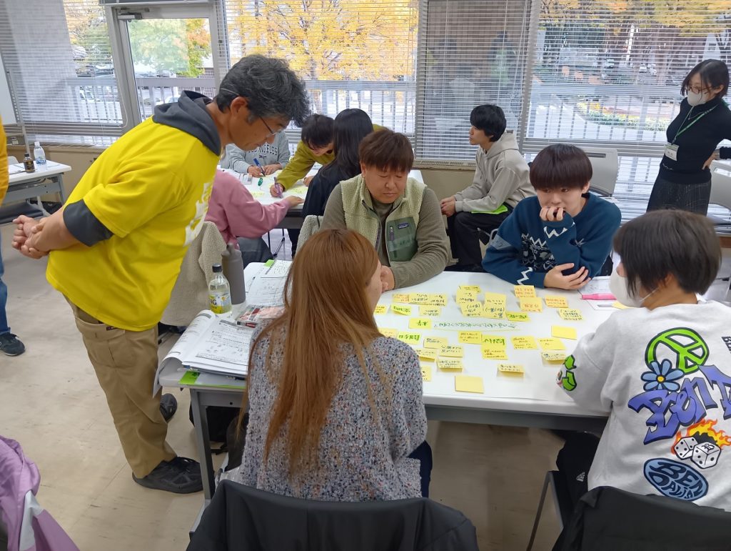 プレーパークづくりについての時間では、受講生の関心テーマから「プレーパークと組織/関係機関」、「フリートーク」の2つのグループに分かれて話し合いました。「プレーパークと組織/関係機関」では、仙台市におけるプレーパークの位置づけや、実際に活動する上で関わる機関との関係づくり、そしてそれらの運営活動を行なう上での組織体制について等を話しました。