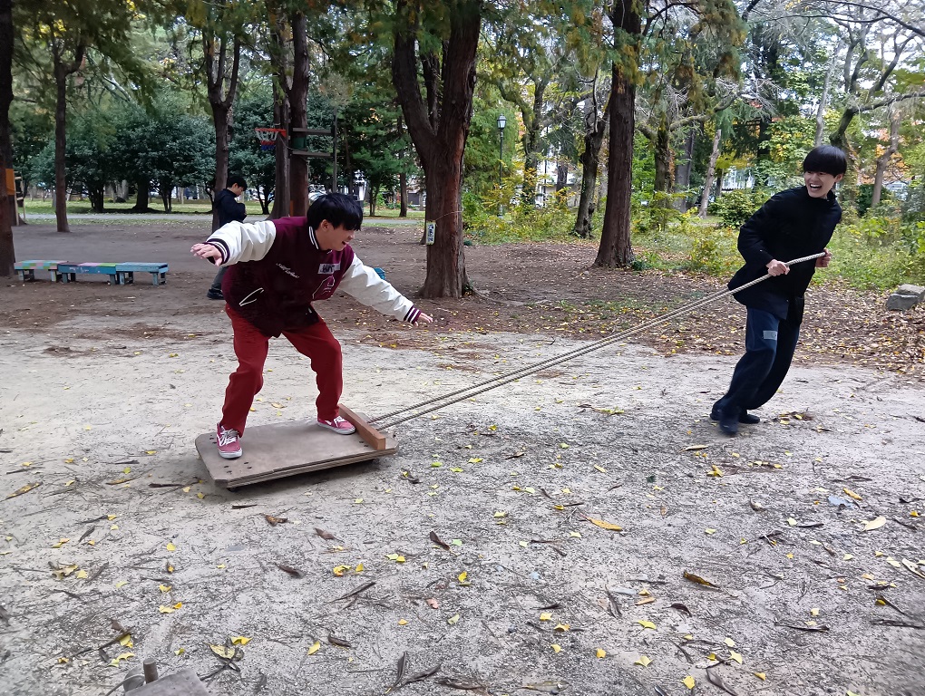 西公園では実際に参加者が遊んでみることを通して、自由な遊びの大切さや、環境・物・人といった魅力的な遊び環境の要素を考えました。プレーリーダーの視点を体験的に学ぶ機会になりました。