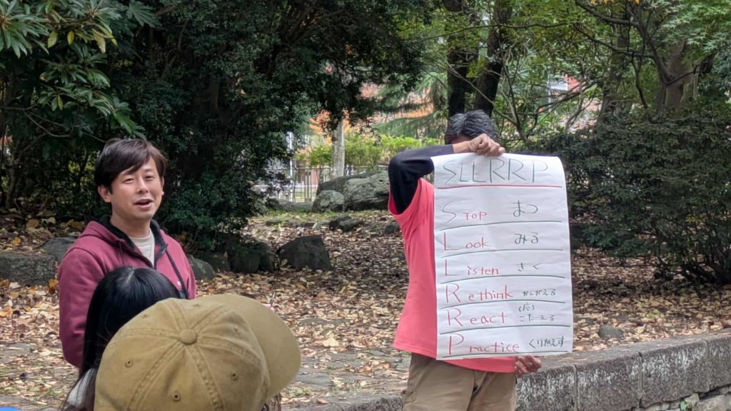 2日目は西公園からスタート!プレーリーダーが大切にしているこどもへの関わり方や、振り返りについて学びました。