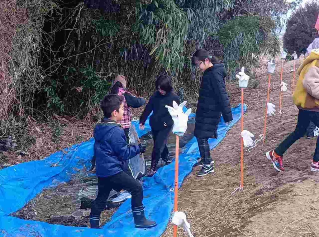ほどなく氷はだんだん小さくなっていきましたが、竹林の枯れ枝をとってきて切ったり、焚き火にくべたり、他にも生き物さがし、野球、斜面すべり…思い思いの時間を過ごしました。